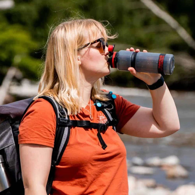 The filter is ideal for hiking, camping, international travel and emergencies, it allows you to take any non-salt water from a stream, river, or tap and filter it instantly. Once the filter is activated and your bottle is full you are ready to drink, no need to remove the lid and filter until your ready to fill your bottle again.